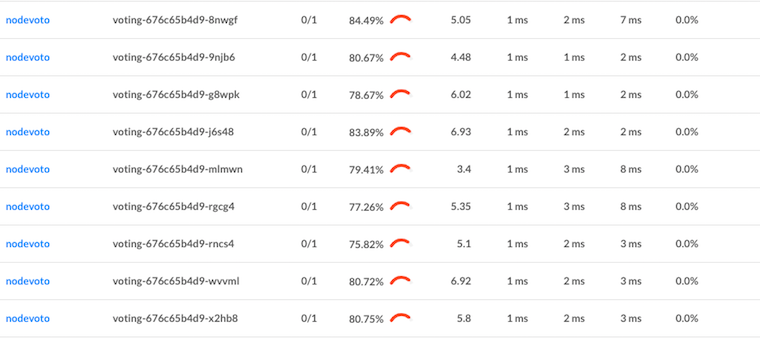 While the voting service displayed here has several pods, it's clear from Kubernetes's CPU graphs that only one of the pods is actually doing any work—because only one of the pods is receiving any traffic. Why?